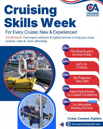 The Cruising Association is hosting Cruising Skills Week, a series of FREE evening webinars designed to share practical knowledge, expert insight and first-hand experience, and a one-day 'Go Affordable Boating Seminar'.
