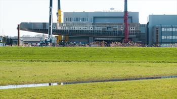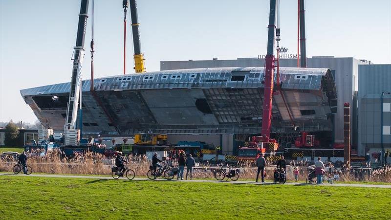 Following Royal Huisman's announcement for its new XXL commission in May last year, the shipyard team has turned the main part of the Trident series hull number 2 at its Vollenhove facility.