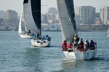 Eclipse and Squirrel race along the San Francisco waterfront in the Red Bra Regatta sponsored by Taiwan