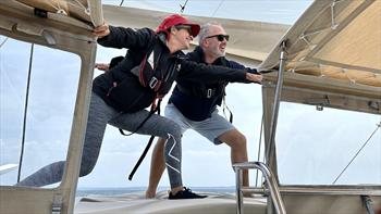 Kim and Duncan's first sea trial & sail on Satellite, off the coast of La Rochelle, France