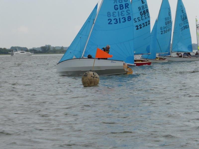 Five visiting Enterprise entered the Deben Open on a bright sunny day with a moderate north wind. The wind direction gave the race officer a difficult decision as to where to take the racing. After some deliberation it was decided to take the racing to a wider part, down river, towards Felixstowe. As all the days racing would be back to back it meant that the boats would return on the high tide.
