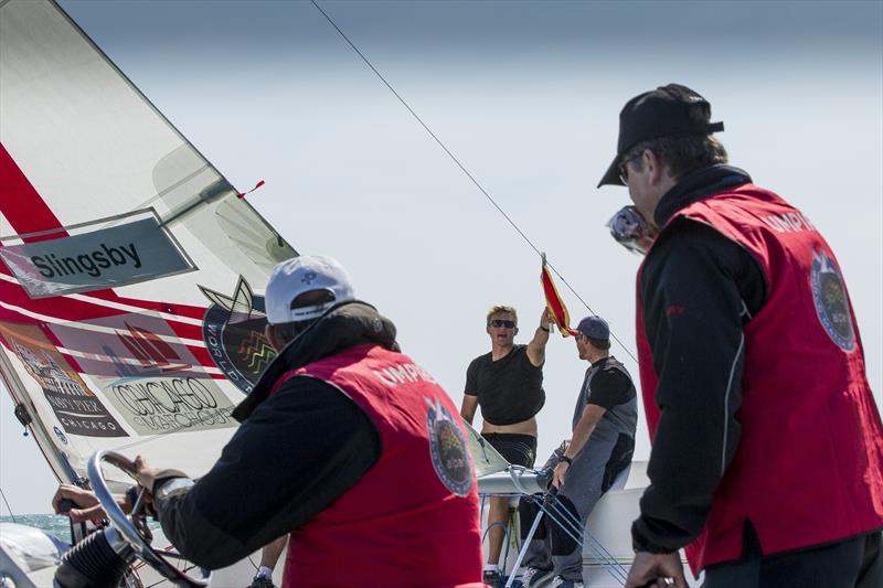 After a lacklustre performance in Qualifying Thursday, and a terrible start to the Repechage on Friday, Björn Hansen (SWE) Hansen Sailing Team looked as though the Chicago Match Cup would end early for him when after three flights he had still not won a single match. He needed to win all of his remaining four matches to have a chance to go through to the Quarter Finals, and even then would be at the mercy of tie-breaks among the other seven teams to determine his fate.