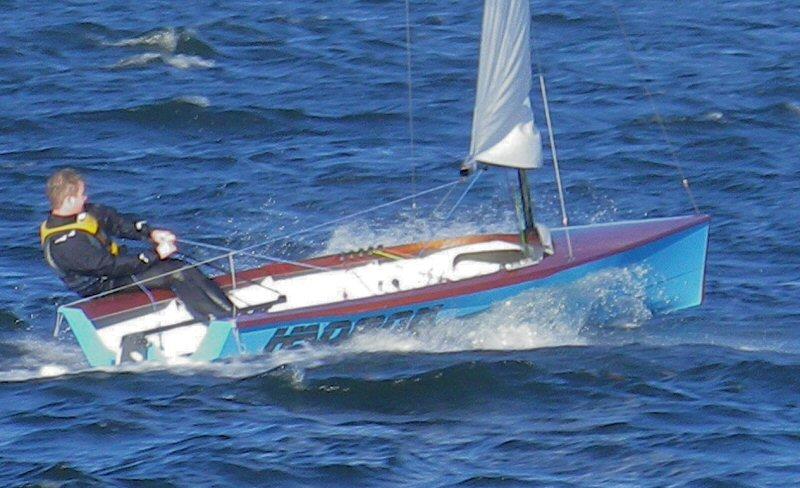 Being IT aware also saw Keith utilising the power of the web to promote his designs to a far wider audience. One place where his designs struck a chord would be in North Germany, where much of their coastal sailing takes place in shallow water. A development of Blue Lightning, Blue Storm, lengthened out to 7m, would prove another success, with boats being built as far away as Australia. After successfully competing in the Practical Boat Owner design competition with yet another design called Blue Skies, Keith would find himself drawn back into the dinghy world, first with a 5.5m dayboat and then with Heatwave, a single hander thought of as a modern take on the Phantom concept.