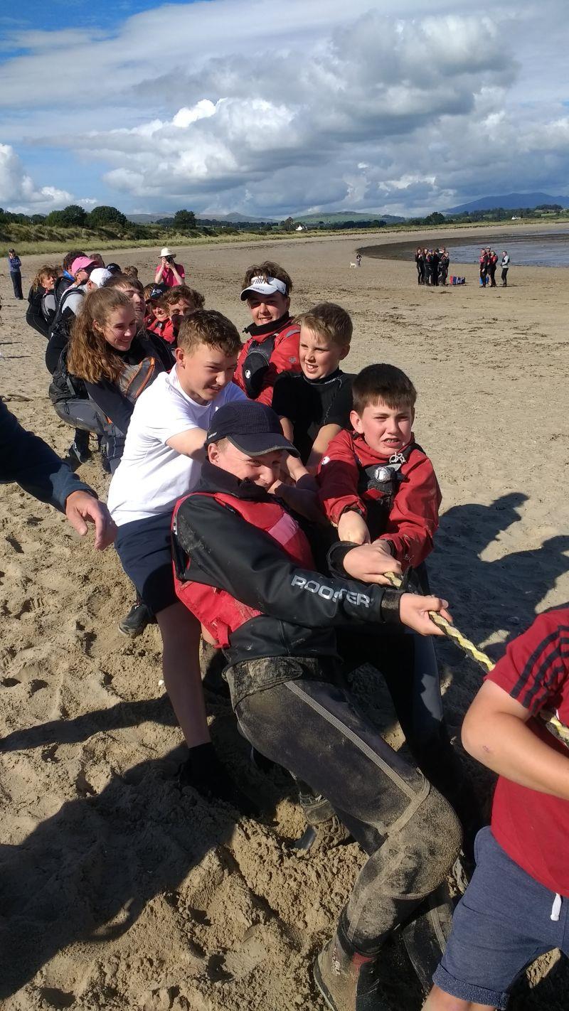 With an early finish and all boats safely ashore, competitors returned to the beach for a couple of hours for an extremely popular Beach Olympics! The competitors assembled into their regional Zone teams, and worked their way round a variety of somewhat chaotic fun events, the lilo racing proved particularly popular and must have attracted close to 100 kids into the sea at one point, and maybe there was a winner at the end, who knows?! What's certain is that there were a lot of very happy, very sandy, kids traipsing back to the clubhouse at the end!