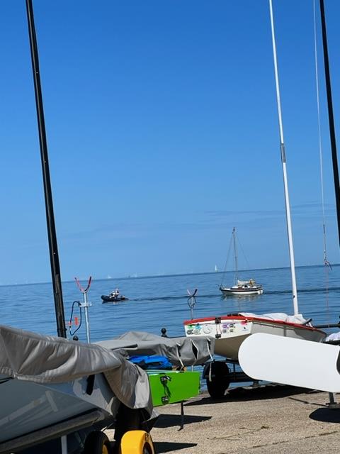 Sadly this was not to be the case and the fleet amused themselves with sun bathing, boat bimbling, sea swimming and examination of Jim Hunt's new boat.