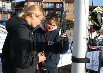 When the second race started the wind had picked-up somewhat, but shifty conditions remained. The most experienced 5.3 sailors were split fairly equally between port and starboard. Port-side boats came out on top owing to the favoured tack. By the windward mark the leading group of five were closely spaced, but Fred Seddon rounded first, followed by Toby and Oscar. By the leeward mark, Hari had moved from fifth to second, and Toby overtook Fred to take the leading position. Toby worked hard to hold-off Hari during the next upwind section, but Hari squeezed past at the windward mark, with Toby in close pursuit. This race finished after two laps for an early lunch, with the final order of Hari, Toby and Oscar. Meanwhile, in the 4.2s, Jake had a good start and lead for much of the race, but was overhauled by Elizabeth, who claimed another bullet, with Jake in second place and Harry Fenton, third.