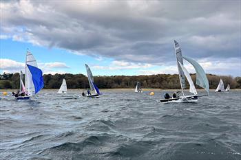 Sunday early doors was quiet but by 10.30 start a reasonable 6-8 knot breeze had set in from due south. Race 4 and Vincent/Bradley had the early lead with Skip Atkins/Mary Rose Bull in close company but Adrian Stell crewed by 4 year old daughter Jessica were on top form. They had way too much pace downwind to score a convincing win from Vincent/Bradley with the Yardley's 3rd. Race 5 was almost a carbon copy with the Stells winning from Vincent/Bradley and the Harden's 3rd.