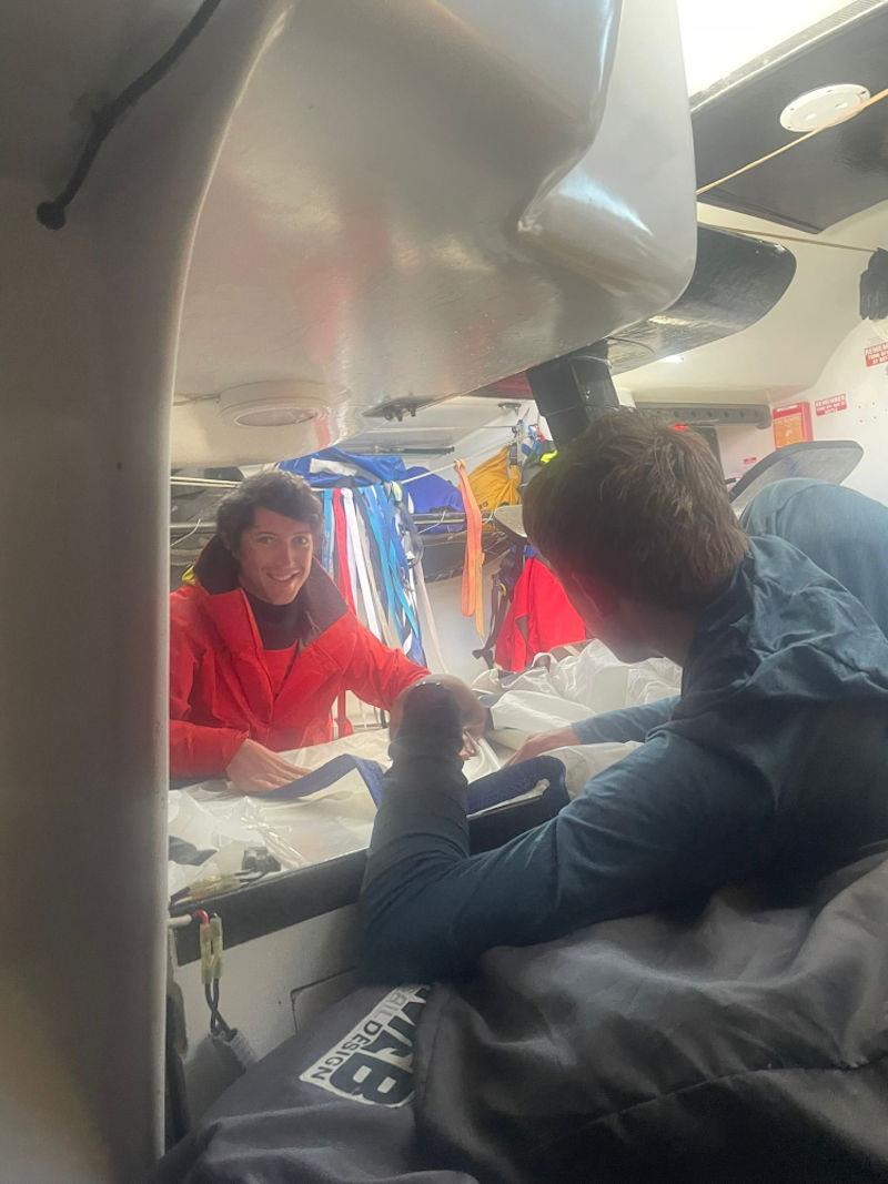 Youth crew on Frantic includes Bayley Taylor (sailed Optimists and Laser Radials at State and National level), who has done a few shorter offshore races, but nothing of this magnitude. The same can be said for Josh Paulson, who is in the early stages of an offshore career and was among those working on sail repairs.