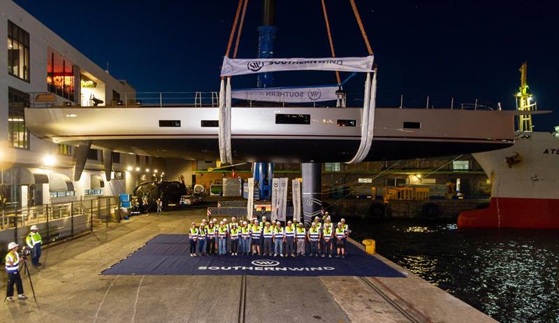 A moonlight christening for the highly anticipated third yacht of the SW108 project. Following the success of her two predecessors, SW108-03 Kalantis introduces a new, distinctive flair © Southern Wind Shipyards