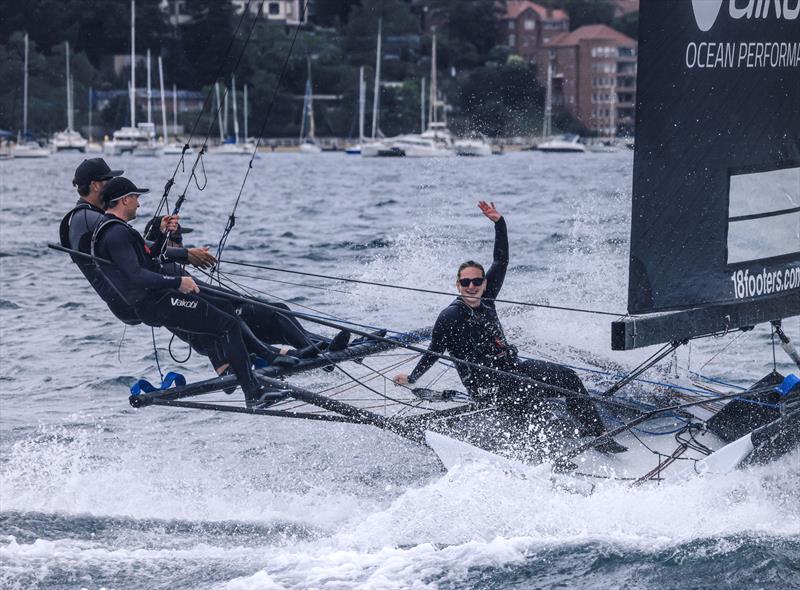 Emma Collins is the 2026 18 footer Queen of the Waves after her Vaikobi team of Kirk Mitchell, Andrew Stephenson and Daniel Barnett raced away to an all-the-way victory in the annual event which had to be rescheduled following last Sunday's cancellation, due to safety reasons, due to very strong winds.