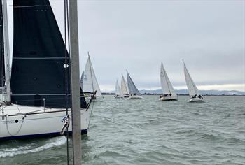 As the course was set, conditions improved, revealing a fresh West to Southwest breeze of 15 knots and a reasonably flat sea, with gusts reaching 20 knots. Race officials opted for Course No. 14, and all fleets managed a clean start on the ebbing tide.