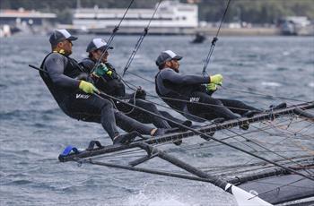The Yandoo team of John Winning Jr, Fang Warren and Lewis Brake formalised their victory in the Australian 18 Footers League's Club Championship for 2025-26 season with another masterly display in Race 14 (the final race), which was sailed in a 10-15 knots North East breeze on Sydney Harbour today.